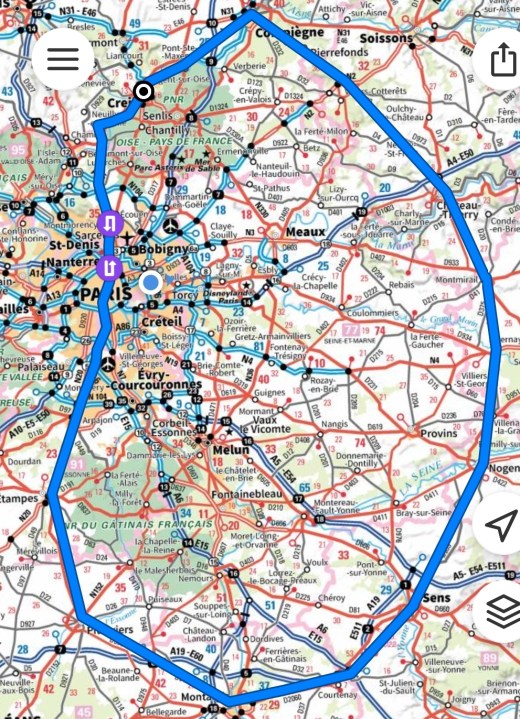 Je sillone une zone de pres de 11 500 km² qui s étend entre les grandes villes à 1h de Paris maximum depuis les gares côté est : gare de lyon-Bercy / gare d’Austerlitz/ gare de l’est et gare du nord.